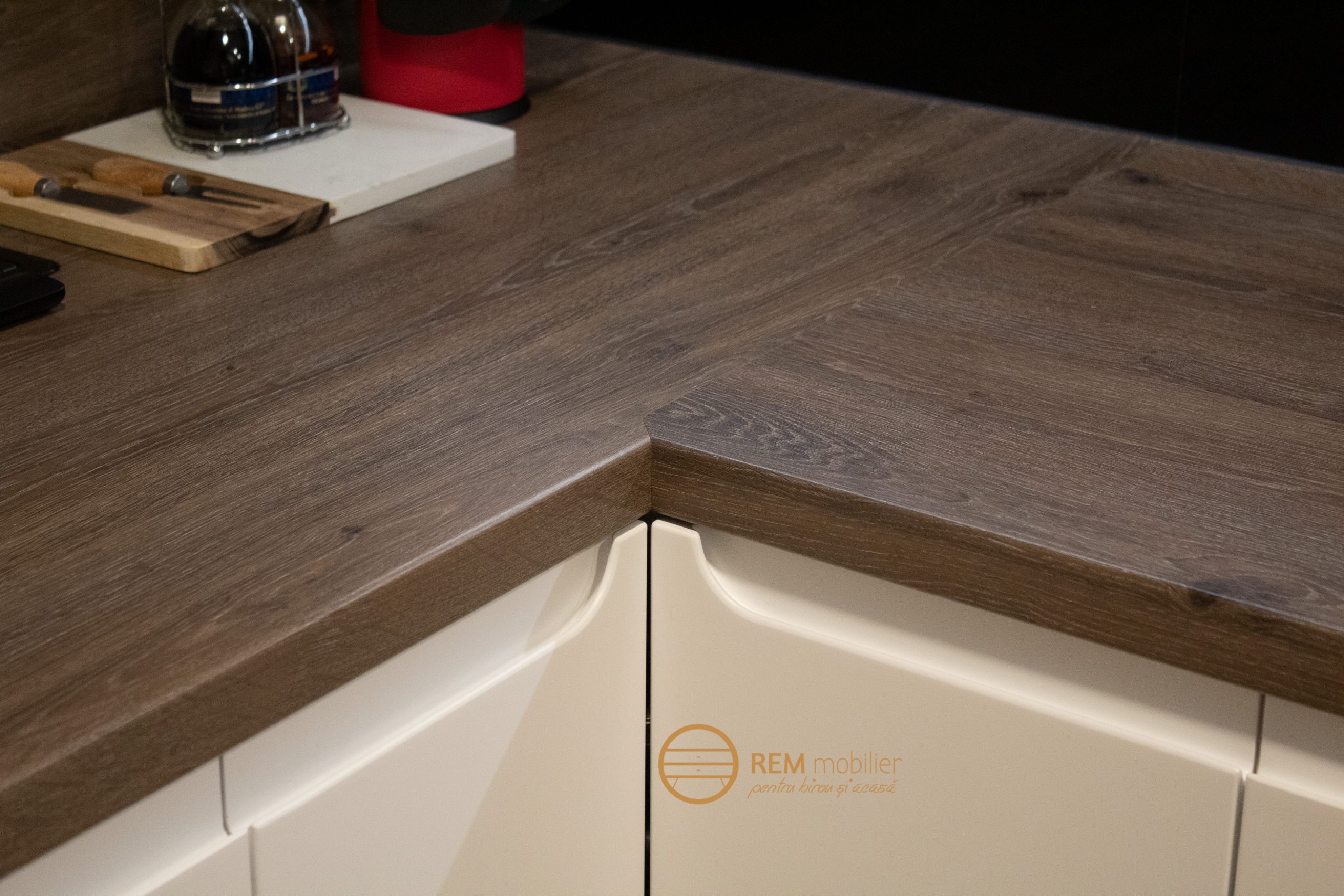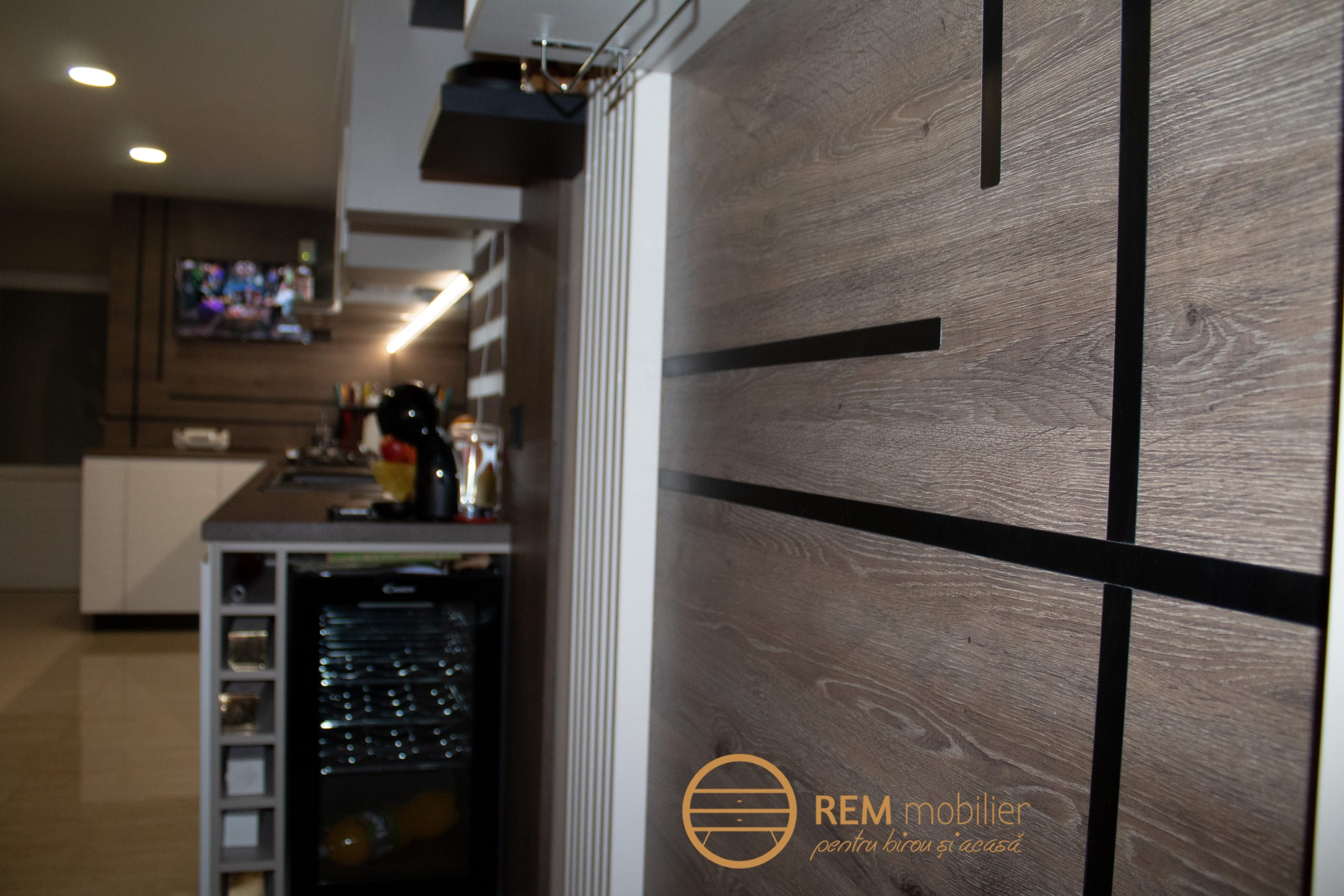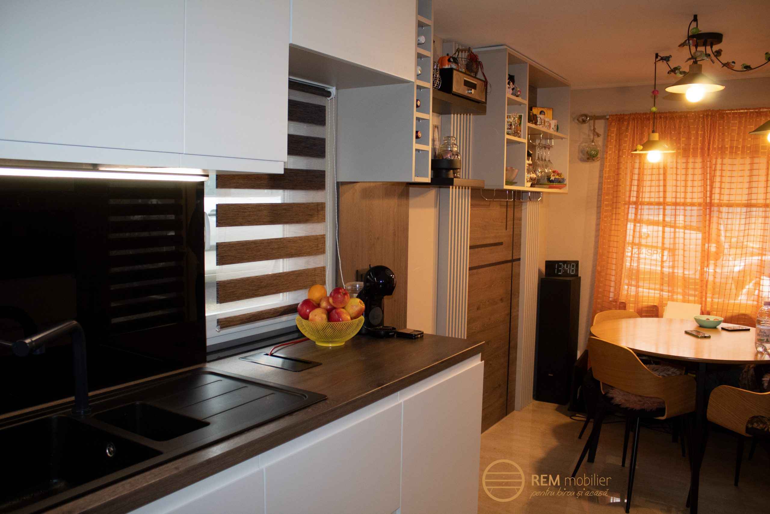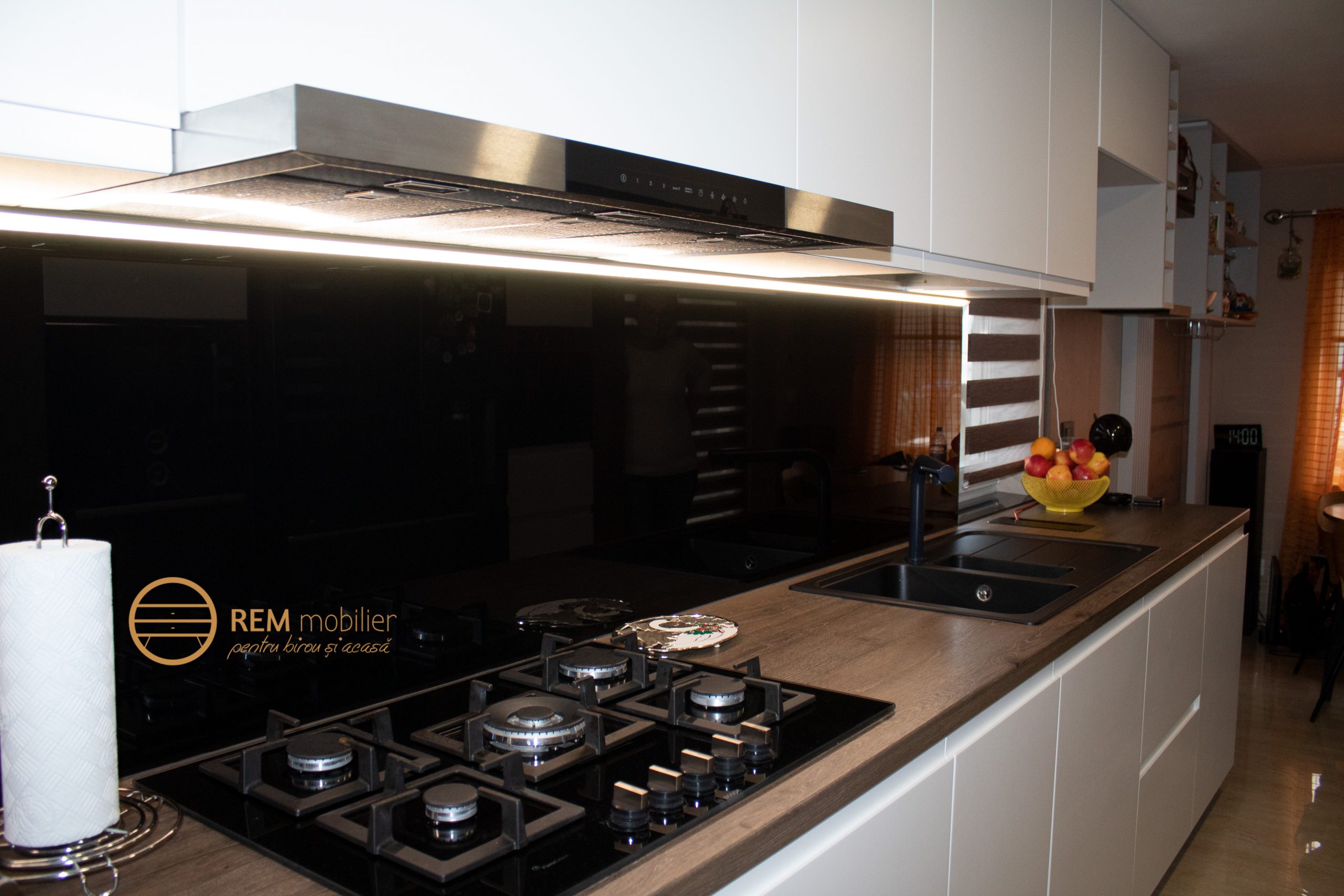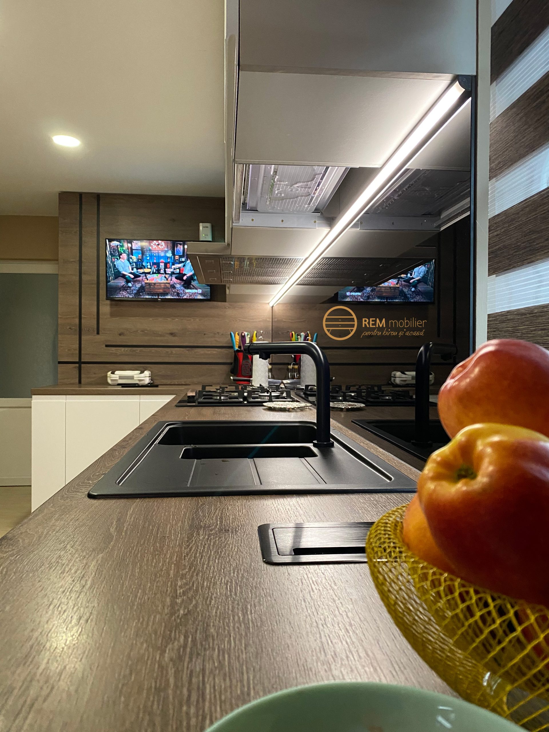 O bucatarie moderna cu detalii ce reusesc sa o scoata din anonimat si sa ii dea un plus de eleganta.