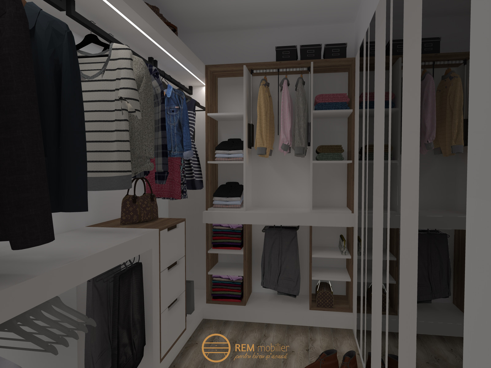 Prin aceste proiecte 3D urmarim sa aratam clientului imaginea cat mai clara a mobilierului in ceea ce priveste compartimentarea dar si culorile.